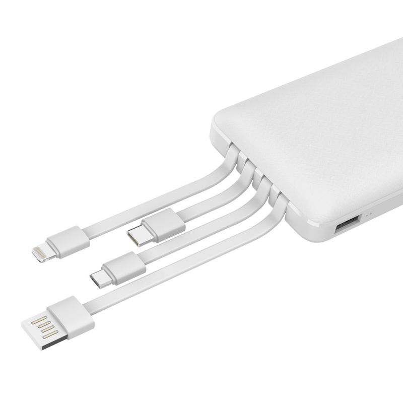Potente acumulador de energía de 10000 mAh con 4 conectores para cargar varios dispositivos a la vez. ¡No te quedes sin batería!