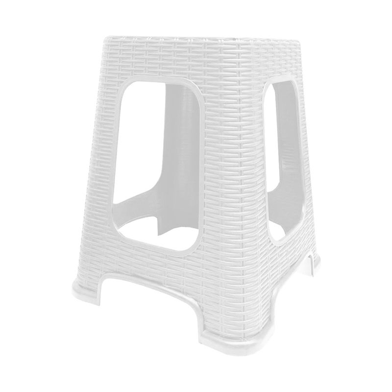 Banqueta simil ratán blanca. Cuenta con una excelente calidad de terminación, además de varios espacios para organizar ó decorar tu hogar. Este artículo se vende en caja, el armado no está incluido, usted puede contactar a un armador externo llamando a nuestro servicio de Atención al Cliente. El artículo ofrecido es el que corresponde a la descripción, cualquier accesorio es meramente ilustrativo.