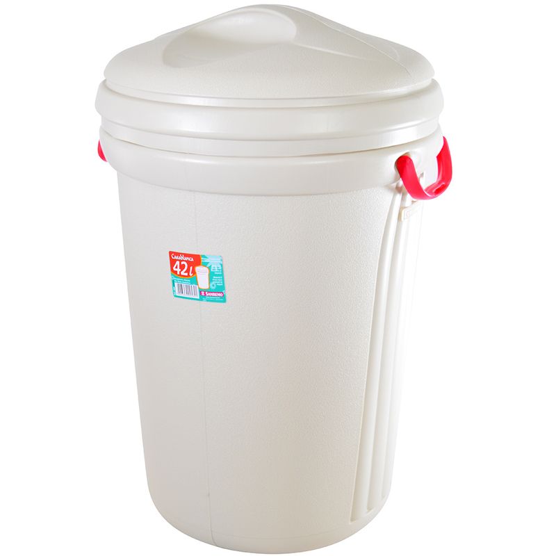 Basurero con tapa, cuenta con 42 L de capacidad. Resistente y fácil de limpiar.