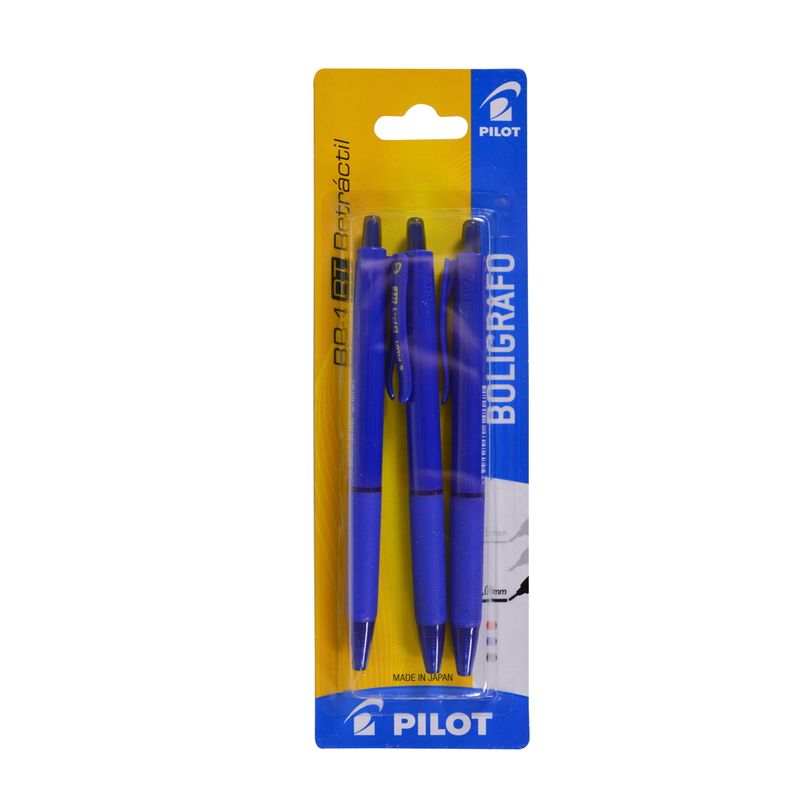 Bolígrafo PILOT retráctil 3un azules, los mejores útiles para las clases.