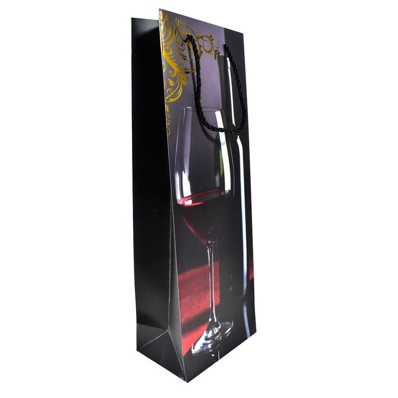Bolsa para botella de 12,8x36x8,4 cm, perfecta para regalos de vino y otras bebidas. Fabricada con materiales duraderos y diseño elegante, ideal para cualquier ocasión especial. Asa resistente para fácil transporte.
