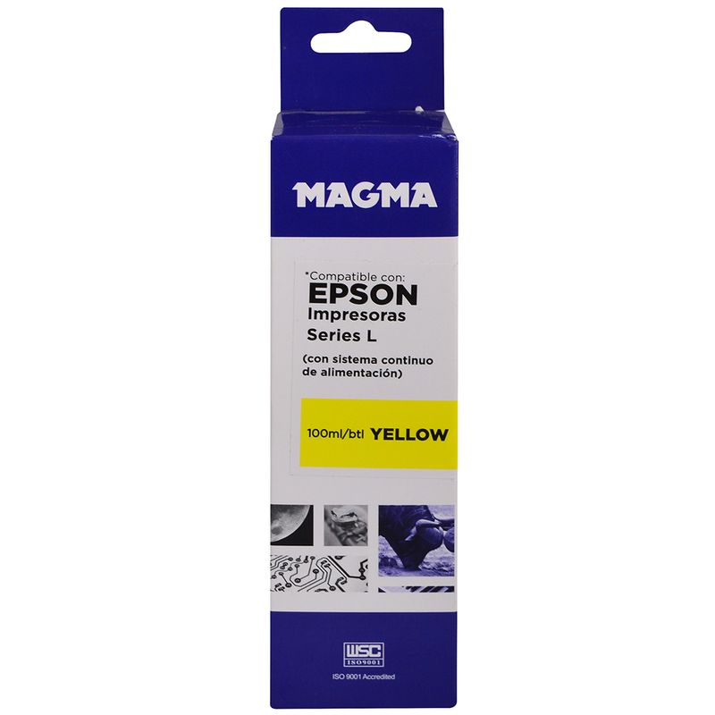 Botella magma para Epson 100ml epciss-yellow, producto de excelente calidad, tenemos los mejores perifericos y accesorios para tu hogar u oficina. Los insumos una vez abiertos no tienen cambio ni devolución.