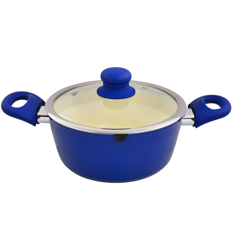 Cacerola azul 20cm aluminio c/revestimiento en cerámica c/tapa vidrio, producto de excelente calidad.