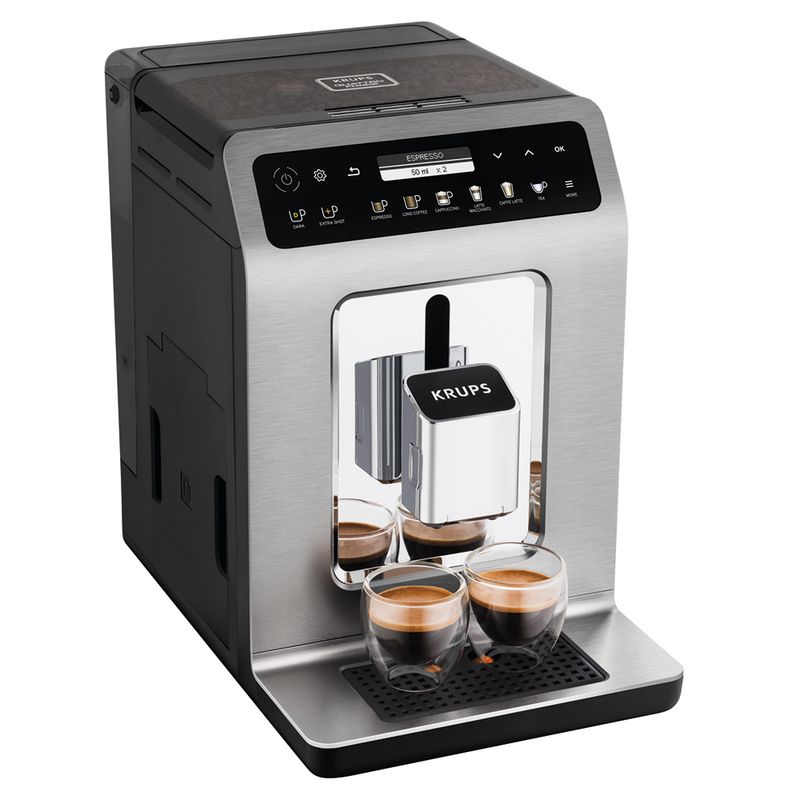 La Cafetera Expresso Auto Evidence KRUPS EA894T10 en color titanio ofrece una experiencia de café de calidad superior. Con una bomba de presión de 15 bares y un tanque de 1.7L, garantiza un espresso perfecto cada vez. Incluye un indicador de encendido, boquilla y bandeja desmontables, pre-calientamiento de tazas, molinillo integrado y apagado automático. Con una potencia de 1450W y 1 año de garantía.