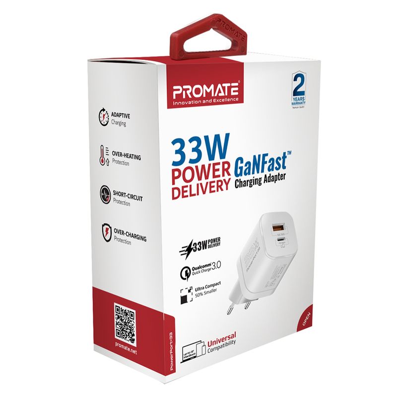 Cargador de pared PROMATE Powerport-33 33w usb-c/a blanco