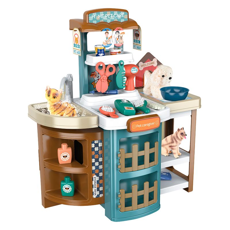 El centro veterinario de pie 14P01 es un juego que incluye accesorios y se pliega en una valija para facilitar su transporte y almacenamiento. Perfecto para juegos de simulación veterinaria.
