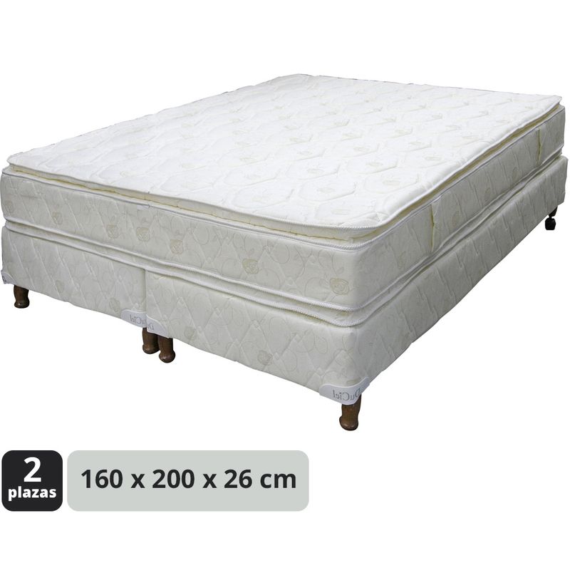 Para tener un gran día es imprescindible tener un buen descanso! Este conjunto de sommier cuenta con un excelente colchón de espuma de 160x200x26 cm. El diseño y distribución de las espumas y fibras utilizadas en las capas de relleno fueron cuidadosamente estudiados para ofrecerte un descanso placentero y reparador. La base del sommier cuenta con una estructura que ofrece un apoyo parejo y firme. El artículo ofrecido es el que corresponde a la descripción, cualquier accesorio es meramente ilustrativo.