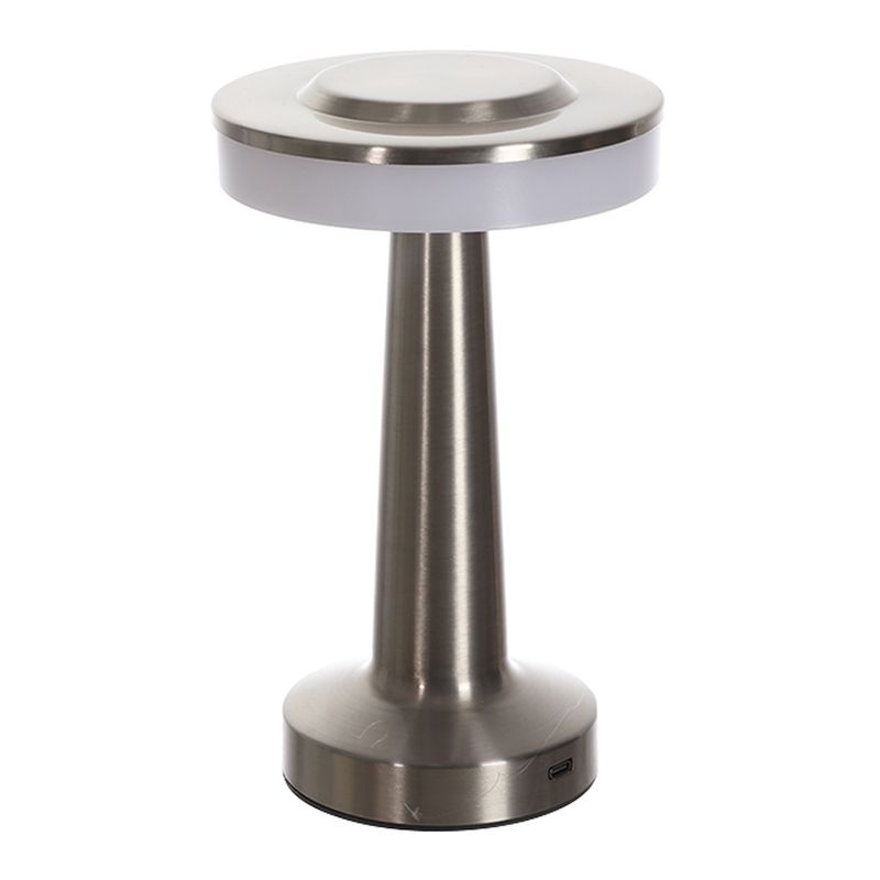Lámpara LED de 12x19,5 cm en color plateado. Moderna y elegante, ideal para aportar un toque sofisticado a cualquier espacio. Perfecta para iluminar mesas, estanterías o escritorios con estilo contemporáneo.