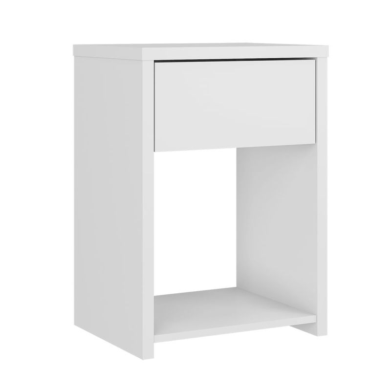 La mesa de luz en un elegante tono blanco, con un cajón y dimensiones de 44,5x62,8x35,8 cm, es el complemento perfecto para tu dormitorio. Su diseño funcional y sofisticado ofrece una solución práctica para almacenar tus objetos personales mientras añade un toque de elegancia a tu espacio
