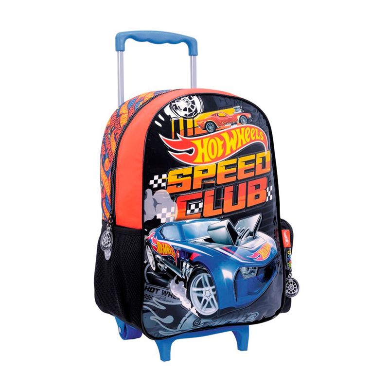 Mochila Hot Wheels 16 con carro. Perfecta para los entusiastas de Hot Wheels. Incluye un carro para llevar tus cosas con facilidad y estilo.