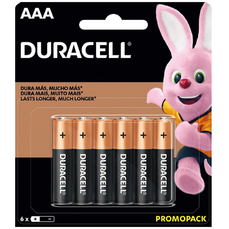 Con este pack lleve 6 pague 4, apovecha al maximo la energia de las pilas AAA alcalinas DURACELL.