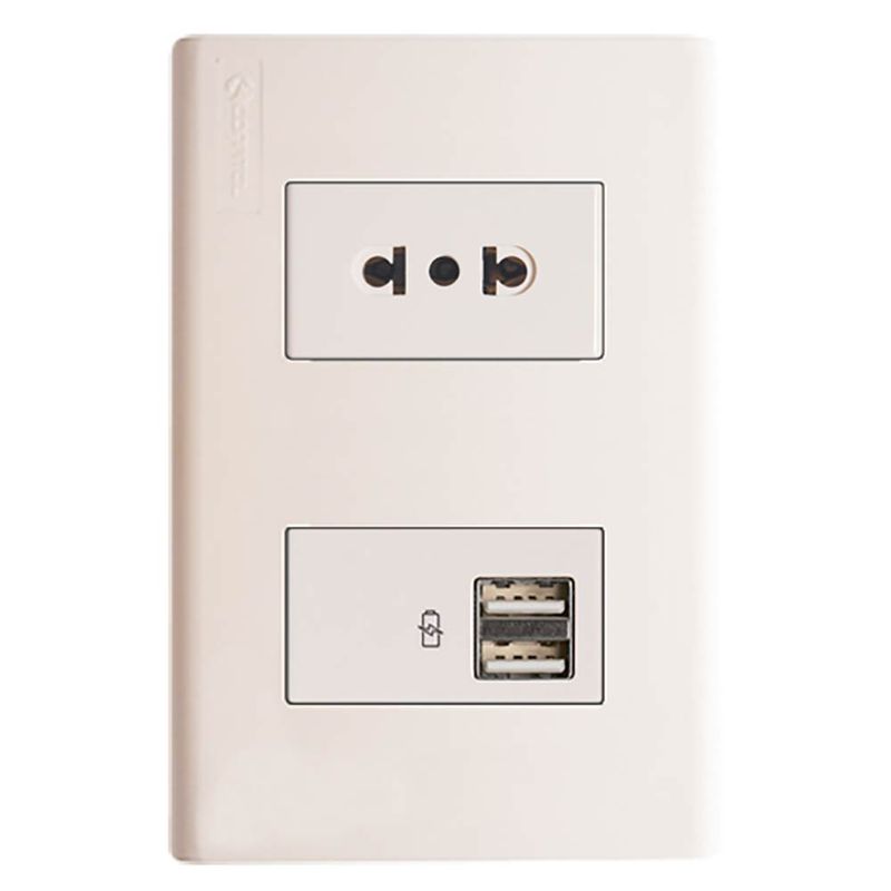 Plaqueta CONATEL Duomo toma con tierra + USB 2 Bocas