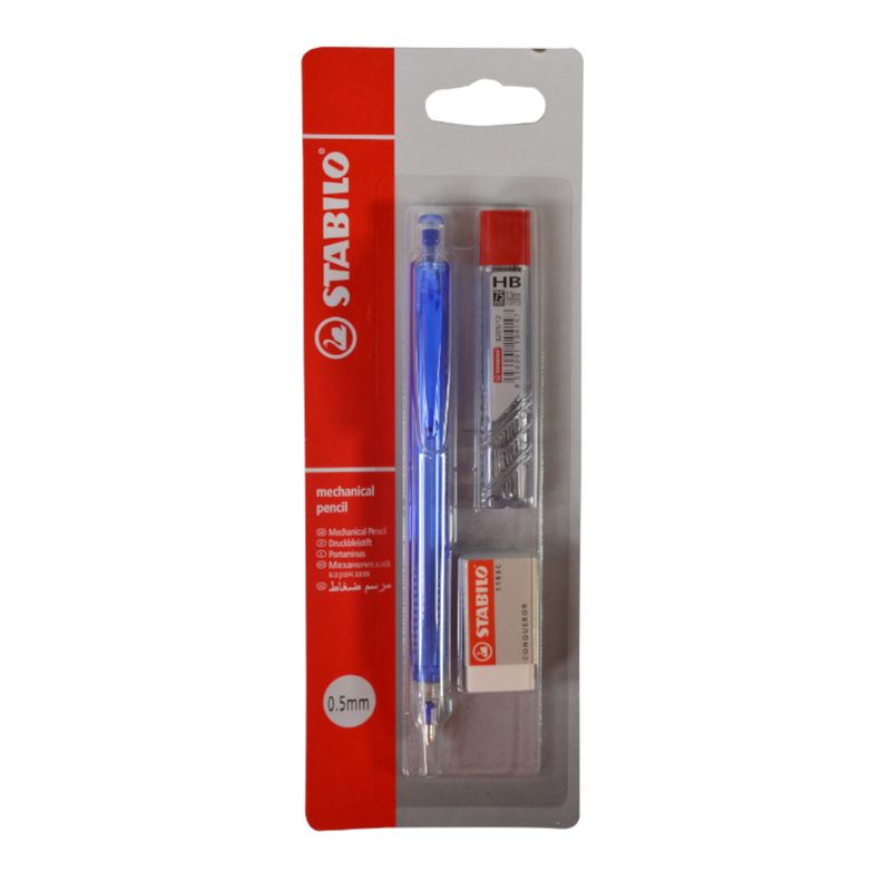 Portaminas STABILO 0,5mm +minas+goma, los mejores útiles para las clases.