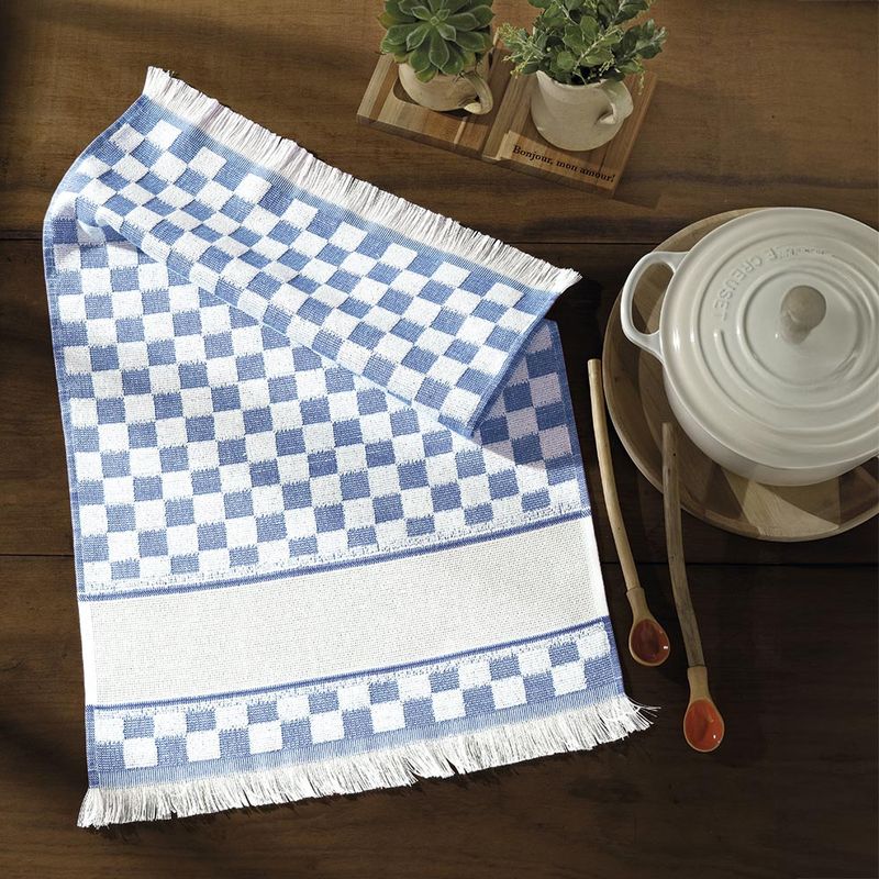 El Repasador Felpudo Döhler Para Bordar Línea Verona, de 41x60 cm, combina azul y blanco, ideal para bordar. 100% algodón, suave y absorbente, perfecto para la cocina. Calidad y estilo en un solo producto.