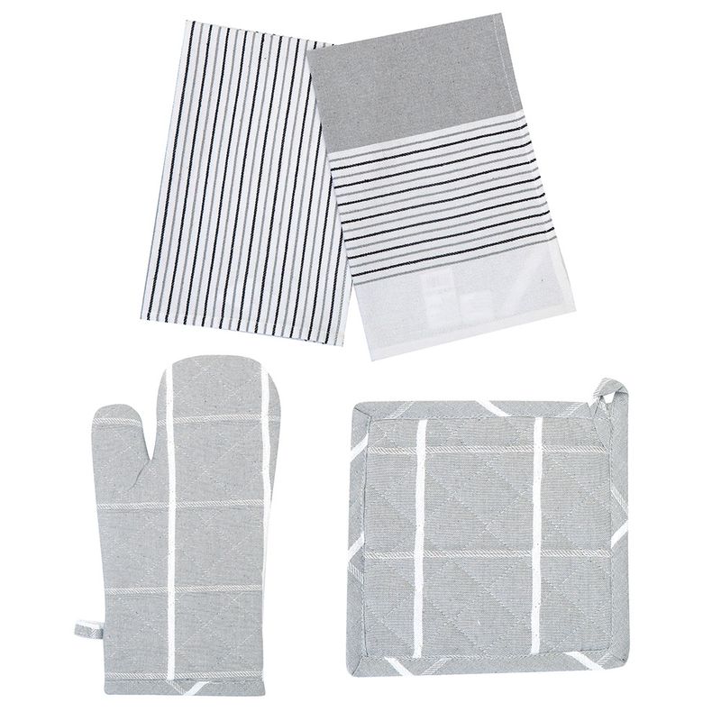 Set Cocina Manopla + Agarradera+ 2 Repasadores Gris
