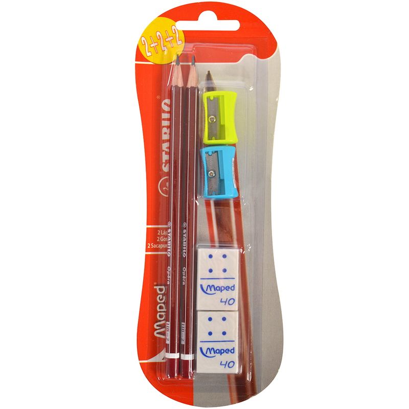 Set STABILO-MAPED 2 lápices + 2 gomas + 2 sacapuntas