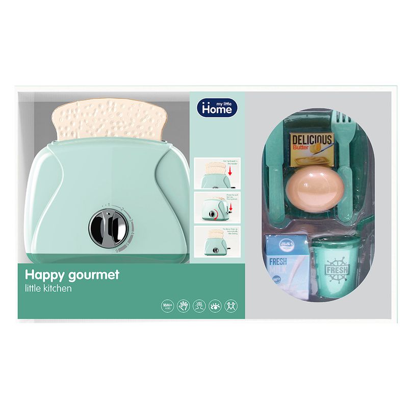 Tostadora con funciones y accesorios, color verde, modelo A10024: Juega y aprende simulando tareas del hogar con este juguete educativo y entretenido.