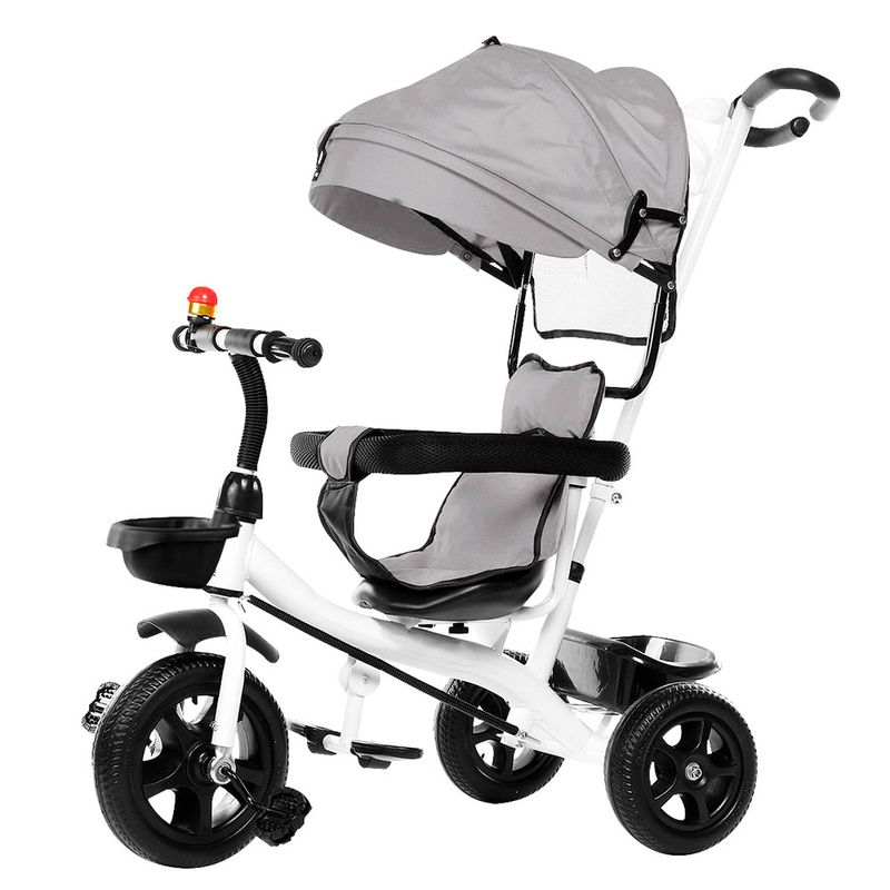 Con su diseño seguro y cómodo, este triciclo es perfecto para llevar a tu pequeño de paseo. El toldo ajustable protege del sol y la lluvia, mientras que el asiento acolchado brinda comodidad.